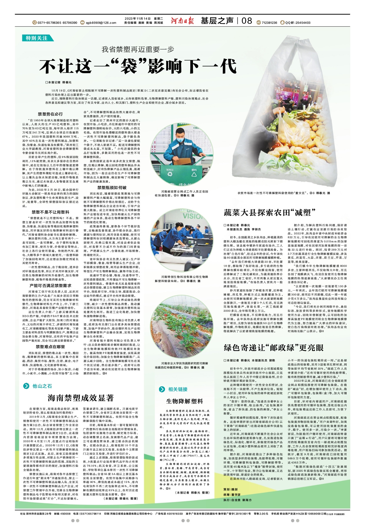 走進(jìn)河南特創(chuàng)生物科技公司可降解產(chǎn)業(yè)園的生產(chǎn)車間,整齊擺放的可降解垃圾袋、購物袋等吸引了記者的目光。項(xiàng)目負(fù)責(zé)人介紹:“項(xiàng)目一期今年6月建成投用,公司產(chǎn)品涵蓋各類生物降解改性樹脂及制品,埋在土里,在大自然微生物作用下,6個(gè)月可以全降解成水和二氧化碳,不僅能做到零殘留、零污染,還能增加土壤肥力,回歸大自然。”