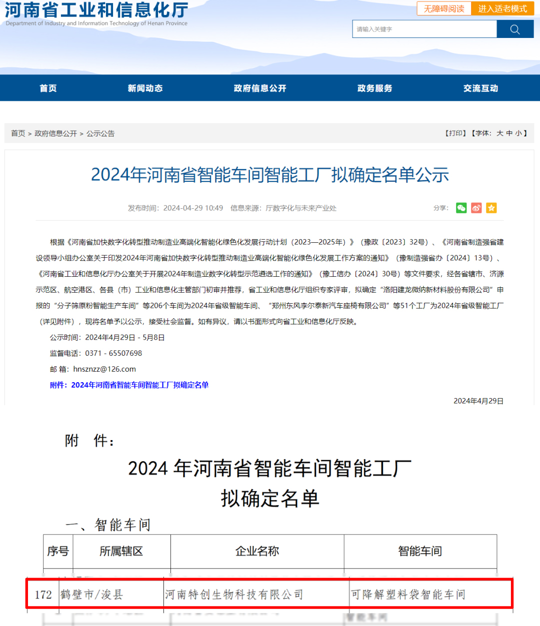 近日,河南特創(chuàng)生物科技有限公司的“可降解塑料袋智能車間”在河南省工業(yè)和信息化廳的嚴(yán)格審驗(yàn)下,成功獲得2024年省級智能車間認(rèn)證,進(jìn)一步鞏固了河南特創(chuàng)在生物基可降解智能制造領(lǐng)域的領(lǐng)先地位。這不僅是對河南特創(chuàng)智能化車間的肯定,也表明河南特創(chuàng)在智能化轉(zhuǎn)型中取得了重要進(jìn)展。