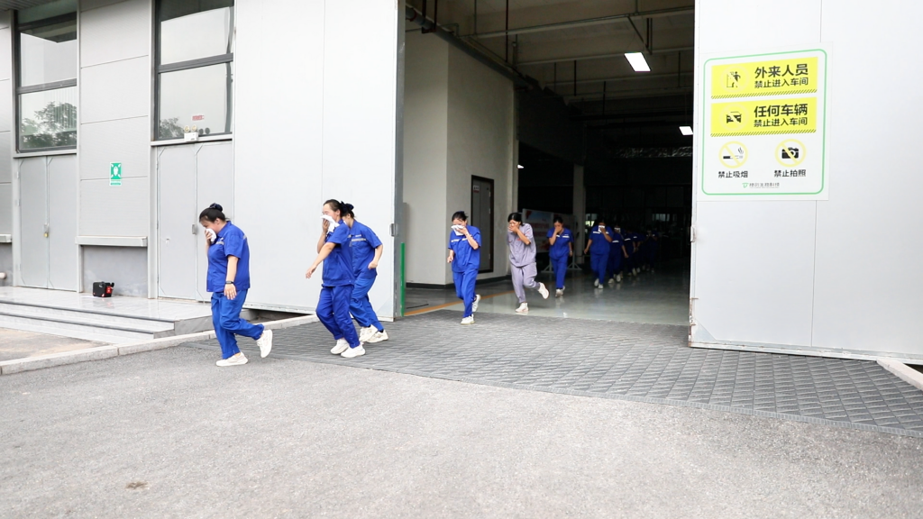 演練模擬公司發(fā)生火災(zāi)場(chǎng)景。隨著警報(bào)聲響起,員工們迅速反應(yīng),按照預(yù)定疏散路線,用濕毛巾捂住口鼻,彎腰低姿,快速、有序地從各個(gè)樓層撤離至安全區(qū)域。整個(gè)疏散過(guò)程緊張而不慌亂,充分展現(xiàn)了員工良好的應(yīng)急反應(yīng)能力。